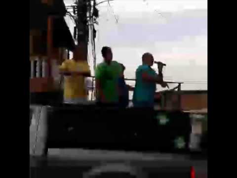 prefeito Carlin Moura (PCdo B). Em cima de um caminhão de som e ao lado Carlin, Zé Antônio gritou ao microfone: